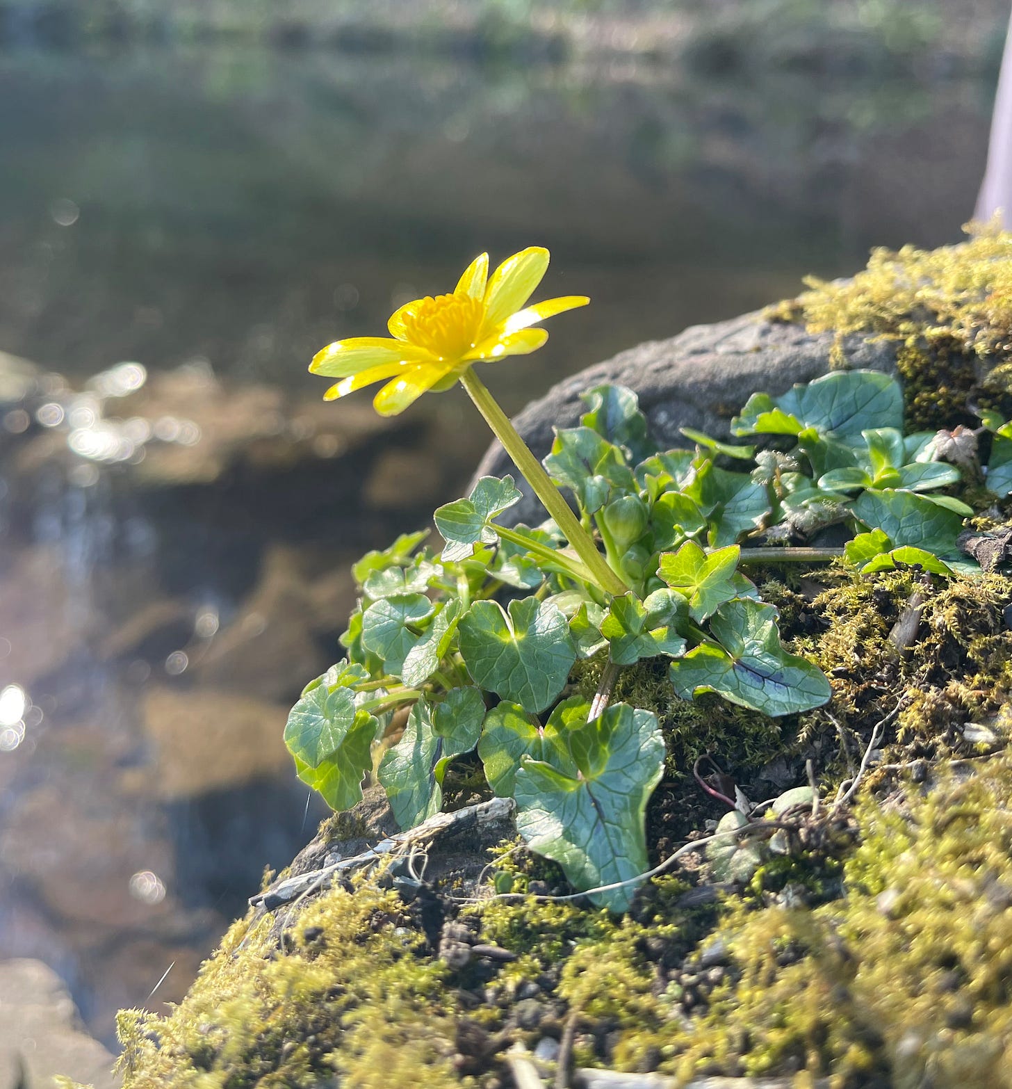 I suddenly become aware of how icy cold my backside has become. The rock that I’m sitting on is still imbued with the memory of the heavy frost last night. The steel like granite drains warmth whilst the early spring sun toasts my face. The whole reflects a story of deep contrasts in a season of change.
